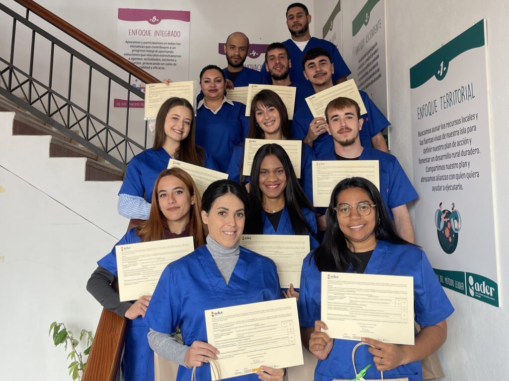 La Asociación para el Desarrollo Rural de la Isla de La Palma (ADER La Palma) ha finalizado recientemente la formación de los dos primeros grupos del proyecto ‘La Palma Contigo’, una iniciativa de formación y empleo dirigida a facilitar la certificación profesional de más de 40 personas en el ámbito de la atención sociosanitaria a personas dependientes en instituciones sociales.