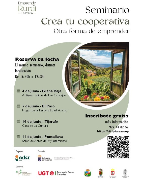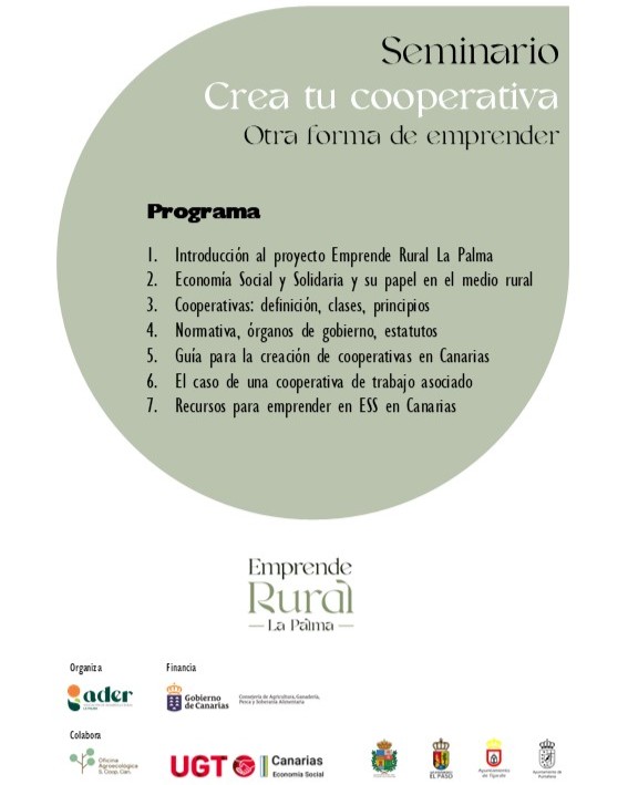 La Asociación para el Desarrollo Rural de la Isla de La Palma (ADER La Palma) pone en marcha una serie de seminarios formativos bajo el título ‘Crea tu cooperativa. Otra forma de emprender’, una propuesta diseñada para acercar a la población los principios de la economía social y fomentar el modelo cooperativo como una alternativa viable, sostenible y comprometida con el desarrollo económico local.